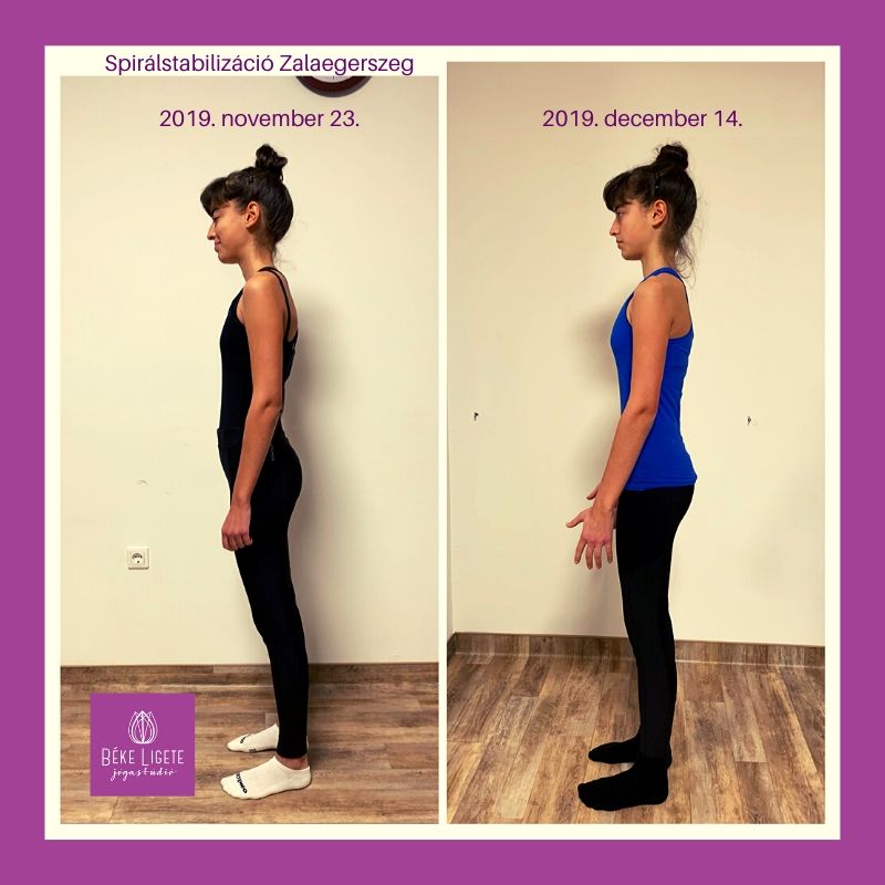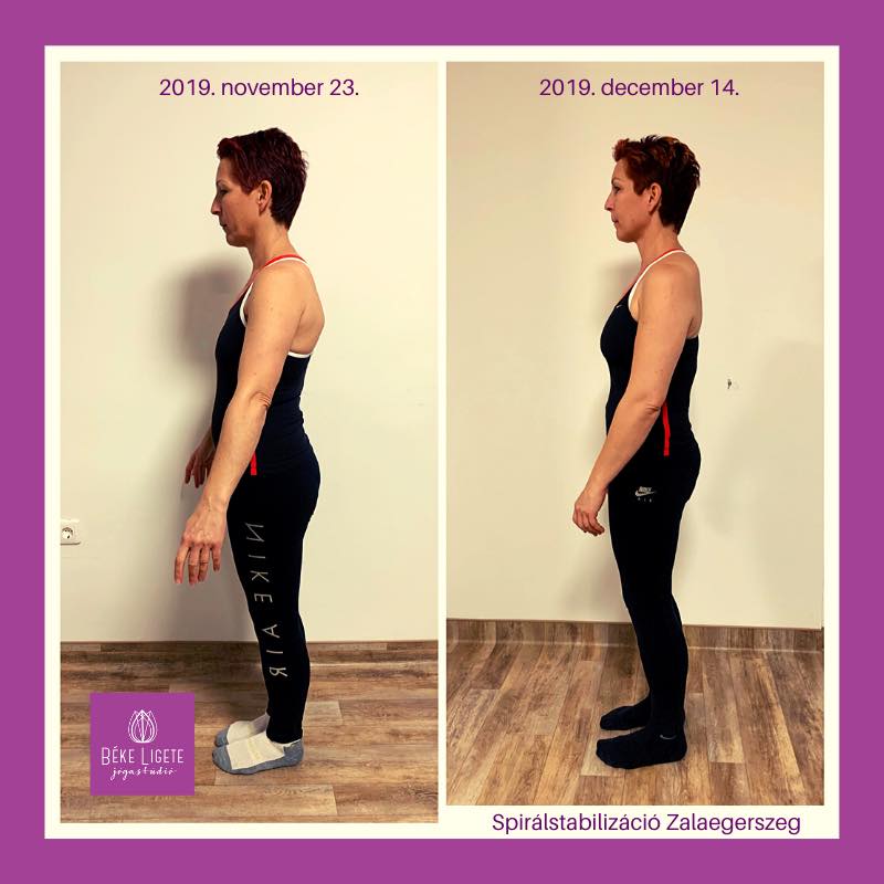 “Rendszeresen gyógytornázom és csinálok más nyújó jellegű gerinctornákat. Nagyon szeretem őket és sokat segítenek nekem. De mindemellett nagyon szükségem lenne izomerősítésre. Ezt sajnos egyik sem tudta kínálni. Ezzel a reménnyel vágtam bele a spirálstabilizációba. Nekem fájdalmaim eddig sem voltak, most viszont már tudom, hogy merre kellene törekednem. És bár az alapproblémámat már visszafordítani nem lehet, azt remélem, hogy a további romlás elkerülhető. Igazából azt érzem, hogy a régen letapadt izmaim megmozdultak és azt is tudom, hogy mi lenne a hátam helyes helyzete. A legjobban az tetszett, hogy olyasmit csináltunk, ami a hátamnak nagyon jó volt.” Tibola Katalin
